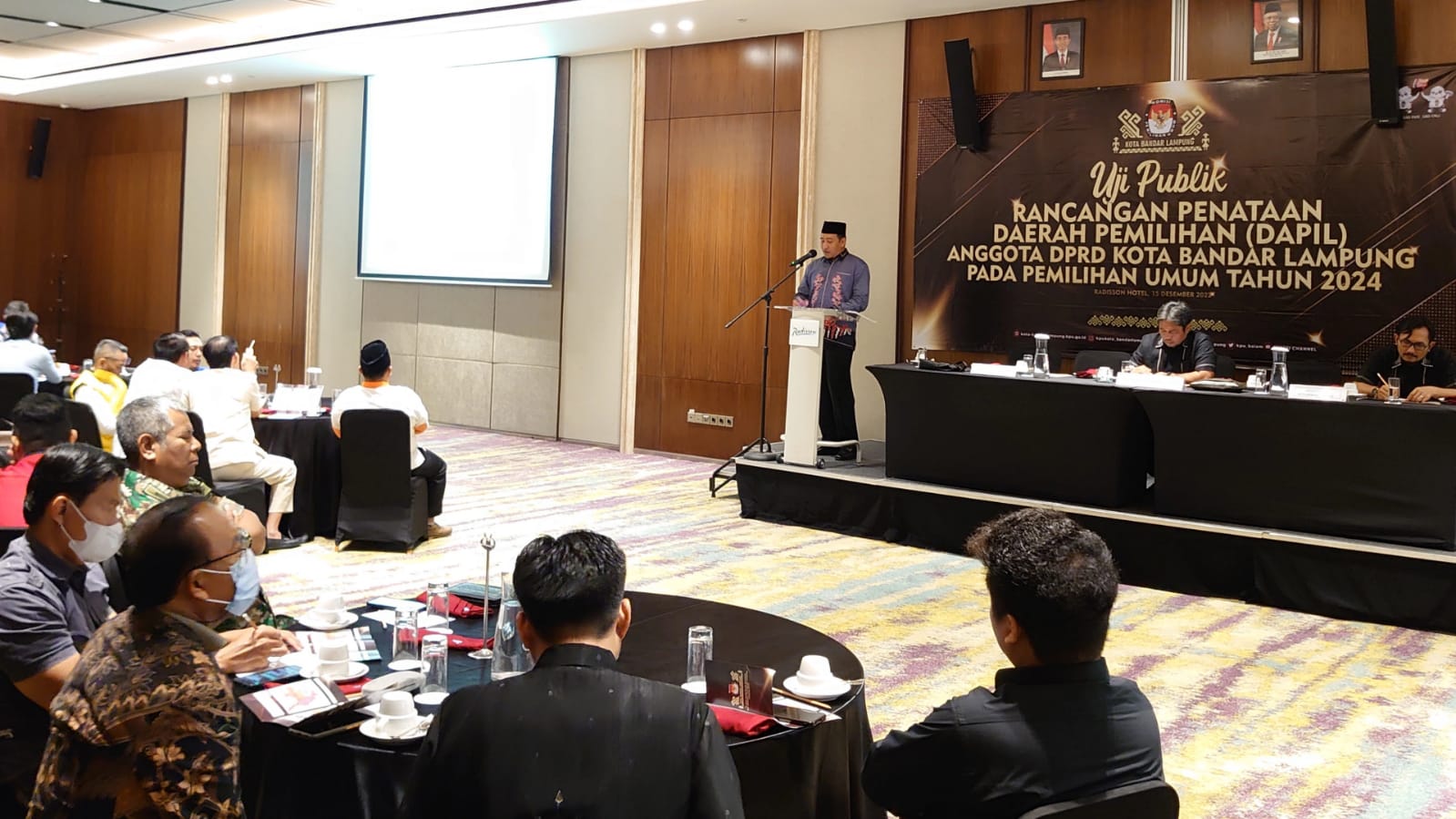 Hal itu disampaikan Tim Asistensi KPU RI, Salahuddin, dalam Uji Publik Rancangan Penataan Daerah Pemilihan (Dapil) Anggota DPRD Kota Bandar Lampung pada Pemilu 2024.